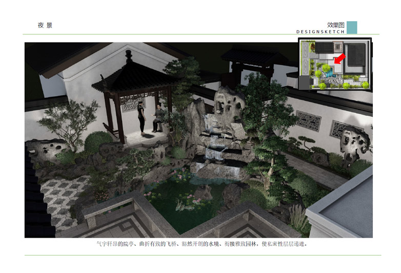 師法自然,融于自然,順應(yīng)自然,表現(xiàn)自然——這是中國(guó)古代園林體現(xiàn)“天人合一”民族文化之所在,是獨(dú)立于世界之林的最大特色,也是永具藝術(shù)生命力的根本原因。中式景觀設(shè)計(jì)借鑒中國(guó)古典園林的造園手法,結(jié)合現(xiàn)代的景觀元素,共同營(yíng)造豐富多變的景觀空間,達(dá)到步移景異、小中見(jiàn)大的景觀效果。
